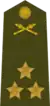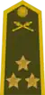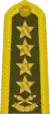 | Vrchní velitel branné moci | Armádní generál | Generálporučík | Generálmajor | Brigádní generál | Plukovník | Podplukovník | Major | Kapitán | Nadporučík | Poručík | Podporučík | |||||||||||||||||||||||||