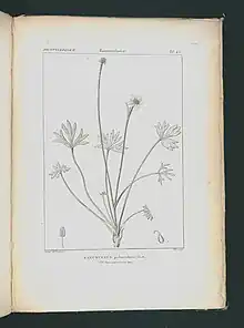 Ranunculus peduncularis is a large perennial buttercup that grows in Patagonia on the margins of woods, scrubs and along streams, with long stems and deeply divided leaves. In the wild it flowers from spring to summer.[2]