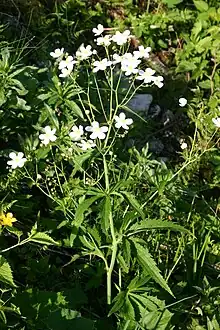 Ranunculus platanifolius, the large white buttercup, is a species of perennial herb of the buttercup family (Ranunculaceae) growing in mountains of Europe.