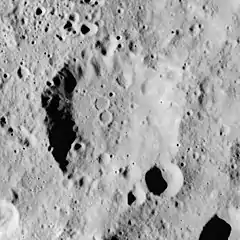 Raspletin is a lunar impact crater that is located along the southeastern inner edge of the much larger walled plain Gagarin, on the far side of the Moon.