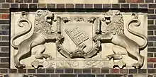 The coat of arms at the gable is a reproduction of an old original sculpture of the Bremen State Great Coat of Arms at the Rickmers' estate in Horn.[1]