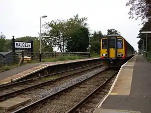 Rauceby railway station is a station near the town of Sleaford, Lincolnshire, England, lying close to the western border of the Parish of Old Sleaford and Quarrington just over half-a-mile south of the village of South Rauceby.