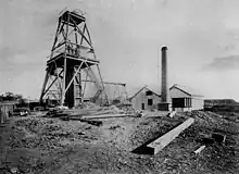 However, not all Wilson's ventures in this period were successful. In 1902 he floated Deep Mines Ltd, with a capital of £100,000,[103] to sink a shaft east of the New Ravenswood Company's leases. This mine (also within the Ravenswood Mining Landscape) was an ambitious attempt to reach a presumed intersection of the General Grant and Sunset reefs at depth. Using the capital raised, Wilson built a model mine and mill. The shaft was started in late 1902-early 1903, and construction work on the buildings and machinery was completed later in 1903.[104][105] The mine reached 512 metres (1,680 ft), the deepest on the goldfield, with extensive crosscutting and driving, but only about 240oz of gold was recovered.[106] No ore was crushed at all in 1908.[14] By 1910 a new shaft was being sunk "near the western boundary"; but the mine was abandoned in 1911, and never worked again.[107][108] Wilson's London investors lost at least £65,000.[1][109]