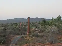 The Ravenswood Gold Mining Syndicate's (Judge's) mill initially consisted of 10 head of stamps obtained from the Mother Lode Mill at Mount Wright (northwest of Ravenswood), powered by a diesel engine. The ore was crushed by the stamper battery, concentrated with Wilfley tables, and then either treated with cyanide or sent to the Chillagoe smelters. Initial success with some rich ore led to enlargement of the mill to 30 stamps in 1939-1940.[14][147] The annual report for 1940 claimed the mill had been expanded to 30 head of stamps during 1940, but work was reportedly also underway on the expansion in late 1939.[148] A Stirling boiler and a 250 hp engine were also obtained from the Burdekin meatworks (Sellheim), and a rock breaker, elevator and conveyor were installed.[149] However, the upgraded mill proved to be overpowered and required a lot of timber fuel; the brick foundations used for the machinery were not strong enough; and the best ore from the Sunset had already been treated, so the mill closed early in 1942 and the plant was moved to Cloncurry.[1][29][150][151]