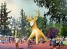 - ↑ Webber, Angela (July 21, 2011). "What's not to love about this giant baby-faced deer statue?". Daily Journal of Commerce. Archived from the original on September 29, 2015. Retrieved September 9, 2015.