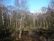 The Red Moor (German: Rotes Moor) is a raised bog in the Hessian part of the Rhön Mountains in Germany. It lies within the eponymous nature reserve in the Rhön Biosphere Reserve and is part of the Europe-wide conservation system, Natura 2000.[1] The Red Moor has an area of 50 hectares and is the second largest raised bog in the High Rhön after the Black Moor (66.4 hectares). For 175 years, until 1984, peat was cut here. The interior of the raised bog is severely damaged, especially as a result of the many years of peat cutting. Its perimeters are however still largely undisturbed areas that are better and more typically developed than the Black Moor, 8 kilometres away. In 1979 large-scale renaturalisation measures began.