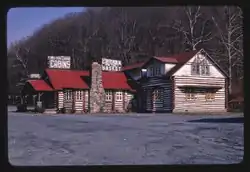 This complex encompassed sixteen contributing buildings and one contributing structure (a stone wall). The buildings were the lodge, cabins, bath house, and a fruit stand. Built in 1939, they were made from chestnut logs with concrete chinking, and were designed in a "log cabin" style. The lodge and cabins closed circa 1965.[2]