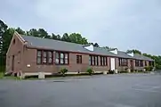 The main building of the Redfield School Historic District is an H-shaped single-story brick building, 15,000 sq ft, with a dormered gable roof. Additional buildings include a carriage house and well house dating to the 1910s. The district includes a 1958 mid-century modern gable-roofed cinder block school gymnasium, 10,391 sq ft, with all wood interior including Glulam wooden beams made in Magnolia, Arkansas. It also includes the athletic fields that lie adjacent to the school building.[2]