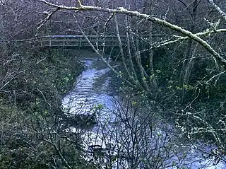 Redwood Creek provides a critical spawning and rearing habitat for coho or silver salmon (Oncorhynchus kisutch), coastal cutthroat (Oncorhynchus clarki clarki) and steelhead trout (Oncorhynchus mykiss), each of them federally listed species. The creek is near the southernmost limit of coho habitat and the fish have never been stocked, so they have a distinctive DNA. The Redwood Creek salmon are Central California Coast coho salmon evolutionarily significant unit (ESU) which have been listed as federally threatened species since October 1996 and as federally endangered species in June 2005.[5] Coho migrate from the ocean back to freshwater for a single chance at reproduction, generally after two years in the ocean. The spawning migrations begin after heavy late fall or winter rains breach the sandbar at Muir Beach allowing the fish to move upstream (usually in December and January).[6] No salmon were seen in the 2007-2008 winter run, nor the 2008-2009 winter run. Evidence points to exhaustion of smolt oversummering in the creek due to a loss of large woody debris and deep pools where young salmon can rest. Starting in 2009, the National Park Service will begin restoring Muir Beach to create a functional, self-sustaining ecosystem and improve visitor access.[7] The intervention was almost too late, since the coho only has a three-year life span. Fortunately, as of January, 2010 and for the first time in three years, an estimated 45 coho swam up Redwood Creek to spawn, creating 23 redds or clusters of eggs.[8] In 2011, 11 live adult coho and 1 coho carcass was observed, along with three redds, a modest increase over the 2007-2008 spawning season.[9] Statewide the coho population is 1% of its levels in the 1940s and the fish have vanished from 90% of the streams they formally visited.[10][11] The Watershed Alliance of Marin reported that no salmon returned to spawn in 2014, prompting concerns that the fish may now be locally extinct.[12] Three adult male coho captured from the creek as juveniles in 2014 were released with three Olema Creek females as part of California Department of Fish and Wildlife operation "coho jumpstart", and at least one of the latter was observed to spawn, raising hopes of a return of a viable spawning run in Redwood Creek.[13]