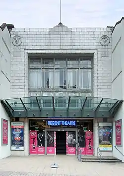 The building was originally opened as a cinema,[2] having been commissioned by Provincial Cinematograph Theatres. The Regent was one of a number of "Regents" built across the country by the company, including one in Bournemouth, Brighton and Bristol.[3] The building was designed by William E. Trent and opened in 1929 by the Lord Mayor of Stoke-on-Trent, William Leason. The building was not only designed for cinema use, but for cine-variety with the stage being used in its early years to host stage performances in-between films.[3] A Wurtlizer organ was also installed.