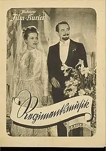 Regimental Music (German: Regimentsmusik) is a 1950 German drama film directed by Arthur Maria Rabenalt and starring Heidemarie Hatheyer, Friedrich Domin and Siegfried Breuer.[1] It was an Überläufer, a film made predominantly during the Second World War but not released until after the fall of the Nazi regime.[2] It was based on the novel Die Schuld der Gabriele Rottweil by Hans Gustl Kernmayr and it sometimes known by this title.[3] It was shot at the Bavaria Studios in Munich. The film's sets were designed by the art directors Rudolf Pfenninger and Ludwig Reiber. The film's direction was originally assigned to Georg Wilhelm Pabst before he was replaced by Rabenalt. [4]