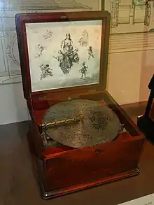 Regina boxes were seen as strong profit drivers partially because they created a steady revenue stream, as consumers would buy new discs to play on boxes they had already purchased.[2] For a machine that cost $500, this was a relatively novel idea.[3] Regina shipped 100,000 music boxes between 1892 and 1921, with sales topping out over $2 million a year. The company had 325 employees, and even as Symphonion established an American branch, Regina thrived as the market leader. Competition from the phonograph jeopardized the company in the early years of the 20th century, and in 1902, it dropped "Music Box" from its name and started to diversify. Its first vacuum cleaner was a two-person hand-pumped pneumatic model which sold poorly. In 1903, Knauth and company overtook the company to protect its investment, relegating Brachhausen to factory manager. New products continued to flood the market from the Regina company, everything from player pianos to copying presses. Eventually, the company went bankrupt in 1922.