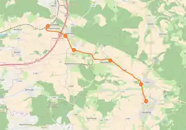 ![]() The former railway line shown on a map from 2017. | ||||||||||||||||||||||||||||||||||||||||||||||||||||||||||||||||||||