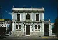 Almost all the furniture and utensils from that era are still in place, as well as paintings and pictures belonging the original owners of this grand old home located directly in front of Our Lady of Guadalupe Cathedral, in the town square. The house is easy to spot thanks to the two caryatids in the front of the house and its overall neoclassic architectural style.[6] With its gorgeous, neoclassical facade, the Casa Armstrong-Poventud is among the most stately and elegant houses in Ponce.[7] Built in 1900 as the home for this Scottish banker, the house served as the regional office of the ICP for 15 years.[8] Casa Armstrong-Poventud building is a magnificent example of the neoclassical architectural heritage of the island. The Residence was listed in the National Register of Historic Places on 29 October 1987.