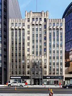 It is an eleven-story, Art Deco style commercial / office building with arcaded shops on the first floor. It was built in 1933[2] of steel frame construction and is faced on the exterior with Indiana limestone. The central portion of the building is a five bay, eleven story "tower" which steps back from the fifth floor.[3]