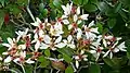 Rhaphiolepis umbellata is a species of flowering plant in the family Rosaceae, native to Korea, Japan and Taiwan. Growing to 1.5 m (5 ft) tall and wide, it is an evergreen shrub with glossy oval leaves, and scented white flowers, sometimes tinged with pink, in early summer.[2]