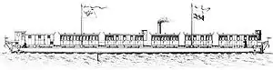 Five pontoons for the transport of wagons were ordered from Cologne Maschinenbau AG (a subsidiary of the Berlin-Anhalt Railway Company) in Cologne-Bayenthal. The 47 metre-long pontoons, Ruhr, Lahn and Mosel could carry eight freight wagons cars or five carriages. The fourth pontoon, the 63 metre-long Rhein carried ten freight wagons or seven carriages. The fifth pontoon, Eisponte carried five wagons. A 30 horsepower steam engine was installed at each end of the ferry route, which hauled a cable across the Rhine, connected via a 2.5 metre-long pulley to each pontoon. The wagons ran over a mobile pier on to the pontoon or off it on the other shore. The pontoons ran on a 65 mm-thick rope guide cable over the river. A second cable was used to tow; it was hauled by the pontoon steam engine by means of two pulleys.