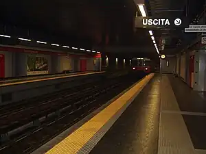 Rho Fiera is a station on Line 1 of the Milan Metro in Rho, Lombardy, Italy. It was opened on 14 September 2005 as a one-station extension from Molino Dorino; Pero station was only added on 19 December 2005.[2] The station provides service to the FieraMilano exhibitition centre and is the current western terminus of the line. It is the westernmost station on the network. The station is outside the urban area of Milan. There is a special ticket, single or return, available for people travelling from Milan in order to visit the exhibitition centre by way of Rho Fiera station.[3]
