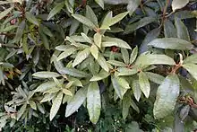 Rhododendron coeloneurum (粗脉杜鹃) is a rhododendron species native to northern and southeastern Guizhou, southern Sichuan, and northeastern Yunnan, China, where it grows at altitudes of 1,200–2,300 m (3,900–7,500 ft). It is a tree that typically grows to 3–8 m (9.8–26.2 ft) in height, with leathery leaves that are oblanceolate to oblong-elliptic, and 7–12 × 2.5–4 cm in size. The flowers are pink to purplish, with purple spots.