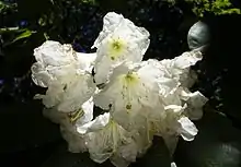 Rhododendron hemsleyanum (波叶杜鹃) is a rhododendron species native to Mount Emei in Sichuan, China, where it grows at altitudes of 1200–1500 meters. It is a shrub or small tree that grows to 2–9 meters in height, with leathery leaves that are oblong to oblong-ovate, and 9–21 × 4.6–10.5 cm in size. Flowers are fragrant and white.