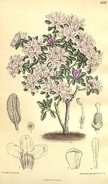 This very compact shrub flowers profusely when it is only a few centimetres tall, and is also hardy, being an alpine plant. It is therefore a suitable subject for a rock garden.[1]