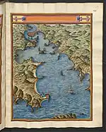 This ria is very touristic, one of the most touristic areas of Galicia, in which the municipalities of Marín, with its Military Naval School,[7] the very touristic towns of Sanxenxo, Bueu or Poio, the city of Pontevedra, and towns such as Portonovo or Combarro, with their characteristic hórreos (pillared granaries) are located.[8]