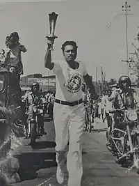 Ahmed running in a ceremony in the Hyderabad Sports Tournament 1979