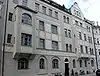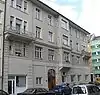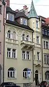 27 Apartment house about 1900 four-story historical corner building with central box bay window and lateral balconies; Commemorative plaque for Fritz Gerlich, who lived in this house[2]