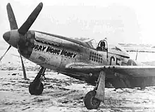 Peterson had 15.5 air victories and destroyed 3.5 aircraft on the ground while flying 150 missions.[12] His P-51 Mustang aircraft were named Hurry Home Honey after his wife's letter closing.[2] On one of the missions, he witnessed a Bf 109 shooting at American B-17 bomber crews in parachutes after being shot down. Peterson attacked the Bf 109 and forced the German pilot to bail out of the aircraft. He shot and killed him as he descended on his parachute. Peterson recalled that some of his unit were nervous that this would invite a retaliatory response from the Luftwaffe. "But they had to be there to know what I was seeing," Peterson said. "Those guys were helpless, the bomber crews going down".[13][14][15]