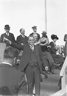 In 1904, Ball returned to the Legislative Assembly as the member for Corowa, initially as a Liberal Reform member, switching to the Farmers and Settlers party in 1913 before joining William Holman's grand coalition[7] which coalesced into the Nationalist Party in 1917. He served until the introduction of proportional representation in 1920.[8] Albury was merged into Murray and Ball was elected one of three members.[9] After single-member districts were re-introduced in 1927 he returned to his old seat of Corowa,[8] He was a supporter of the Riverina new state movement. He joined the United Australia Party in 1931 but the following year he defected to its coalition partner, the Country Party.[1] There were 2 Country Party candidates for the 1932 election for Corowa and Ball retained the seat by just 1 vote after 72% of Lang Labor preferences went to the other Country Party candidate.[8]