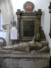 Sir Richard Berkeley (1531 – 1604) of Stoke Gifford, Gloucestershire was MP for Gloucestershire in 1604. He had previously served as Sheriff of Gloucestershire in 1564, and as Deputy Lieutenant of Gloucestershire. He was knighted by Queen Elizabeth I in 1568.[1] In 1595 he was appointed Lieutenant of the Tower of London. In 1599 he was appointed custodian of Robert Devereux, 2nd Earl of Essex (d. 1601), who was kept under house arrest at Essex House[2] in London. He died in 1604, whilst serving as MP, and was buried in The Gaunts Chapel, Bristol, where exists an effigy of him, which chapel had been founded in 1220 by Maurice de Gaunt (d. 1230), a member of the Berkeley family, and which stands opposite St Augustine's Abbey (after 1542 Bristol Cathedral), founded by a member of the Berkeley family of nearby Berkeley Castle.