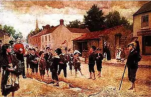 In 1887, he was employed by a Dublin newspaper, The Union, as a political cartoonist.[2] During his time as a cartoonist, he used the pseudonym "Lex". He was a leading exhibitor at the Royal Hibernian Academy with works such as "bleak house", "a travelling show" and "military manoeuvres" being some of the pieces displayed here. Moynan had issues with intemperance and tubercolosis, which ultimately led to his career and health decline. In the final years of his life, there was little work created by him, only a final painting which was submitted to the academy in 1902 titled "The Death Of The Queen" which depicted the death of Queen Victoria and the reaction of people from Dublin who were standing around a newspaper boy.[3] He was absent in 1903 and 1904 but submitted an unimportant work in 1905. On 10 April 1906, he died at his residence at 15 Garville Avenue, Rathgar and was buried in Mount Jerome on 12 April aged 50 years.[4]