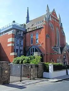 It was formed in 1877 as Richmond Presbyterian Church.[4] The church was previously located on Little Green, close to Richmond Green, in a Grade II listed building designed in a Gothic Revival style by William Wallace in 1883 and built from 1884 to 1885.[5] That building remains but has been adapted for residential use.[6]