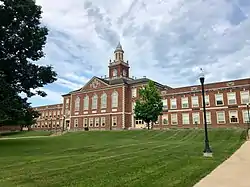 Built in 1939-1941, the Colonial revival-style school originally consisted of an academic building called Morton Hall, a gymnasium called Civic Hall, and McGuire Hall, which houses the Richmond Art Museum. After outgrowing the Civic Hall gymnasium, the Tiernan Center was built as the home to boys' and girls' basketball, volleyball, and wrestling. The old Civic Hall gymnasium was converted into the Civic Hall Performing Arts Center, an auditorium which seats 924 and is home to the Richmond Symphony Orchestra in addition to other school and civic performing arts events. The current building consists of 500,000 square feet for instruction and student support services.[3]