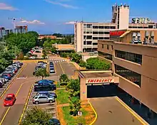 Richmond Hospital is located on the southeast corner of Westminster Highway and Gilbert Road, and can be accessed by TransLink Buses 401, 407, and 414.[10] As well, the Canada Line Richmond–Brighouse Station is located three blocks east of the hospital.[10] Located on the southwest corner of the hospital is a multi-storey car park accessible from Gilbert Road, and as of November 2013, it charges $1.75 for half-hour parking, $15 for 24 hours parking, as well as $35.25 and $63.00 for its weekly and monthly parking passes, respectively.[11]