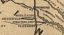 Map from 1891 showing the stops on the Stops on the Richmond and Petersburg.