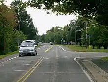 It was not until the early 1900s that the road saw major improvements, thanks to the increasing usage of the automobile.[3] In 1908, the New York State Legislature established Route 30, an unsigned legislative route extending from Niagara Falls, Niagara County in the southwest to Rouses Point, Clinton County, in the northeast. Two sections of Ridge Road—from Porter (modern NY 429) to Ridgeway (NY 63) and from Rochester to Red Creek—were included as part of Route 30 at this time. Another section, from Ridgeway to the Orleans–Monroe county line, was added to Route 30's definition in 1914 as a spur route.[20][21] On March 1, 1921, the mainline of Route 30 was realigned to follow Ridge Road between Ridgeway and the Rochester city line at Greece.[22]