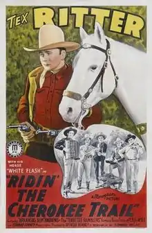 Ridin' the Cherokee Trail is a 1941 American Western film directed by Spencer Gordon Bennet and written by Edmond Kelso. The film stars Tex Ritter, Slim Andrews, Forrest Taylor, Betty Miles, Jack Roper and Fred Burns. The film was released on February 25, 1941, by Monogram Pictures.[1][2][3]