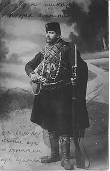 He was later excluded from the Board, due to foreign influence, and became a night-watch of the Committee in Belgrade.[1] Others that had been excluded for various reasons of insubordination were Jovan Dovezenski, Vanđel Skopljanče, Emilio Milutinović, Jovan Pešić, Vladimir Kovačević and Trenko Rujanović.[4] Despite being excluded, he asked the Central Board several times for a band, though he was always rejected.[1] He left the night-watch and then travelled to Ristovac, Pirot and Kragujevac.[1] It was unlikely that an unemployed could travel that much, so the police soon noticed him.[1] In 1908, he was a member of the Congress as a secretary of priest Novak Ristović.[2] In 1924, he, Janko Pešić and Danilo Dimitrijević opened a shoe factory in Vranje.[5]