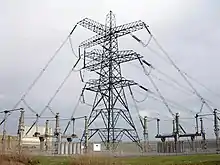 Each tunnel carries a 400 kV electricity circuit on the transmission line between the National Grid substations at Grain and Kemsley (Line Reference: 4TL).[1] The oil-filled cables are designed to carry 3780 Amps in Winter and 3060 A in Summer.[2] The tunnels are 1,700 metres long, 2.54 m in diameter and between 34 m and 47 m below ordnance datum. The tunnels are connected to a common 6.1 m diameter vertical access shaft at each end.[2]