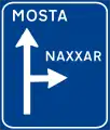 Road signs in Malta are regulated by the Road Signs and Road Markings Regulations 1969,[1] amended several times over the years, most recently in 2011, and are standardised by Transport Malta.[2] Maltese road signs are divided into warning signs, regulatory signs, information signs and road markings. The Transport typeface is used on road signs as well as on road signs in the United Kingdom. Maltese road signs, regulated by The Highway Code of Malta, are based on those used in the United Kingdom, since the island nation was a British colony until 1964 when it became independent, with minor exceptions, for example, speeds are measured in kilometres per hour and distances in metres.[3] However, road signs produced in Italy may be found in Malta and are identical to those used in Italy[4][5] currently (for example the Stop sign) or in the past (for example the U-turn prohibition sign), sometimes "mirrored"; in these cases the "Alfabeto Normale" typeface is used, as in Italy. To date, in the Maltese archipelago there is therefore the coexistence of different signs on the British and, to a lesser extent, Italian model for the same function (even in combination). It is rarely possible to encounter, again without any official nature, diamond-shaped warning signs similar to those used in Ireland.[6]