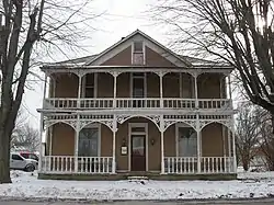 Roads Hotel is a historic hotel building located at Atlanta, Hamilton County, Indiana. It was built in 1893, and is a two-story, rectangular, Queen Anne style frame building. It measures approximately 36 feet wide by 60 feet deep and features a two-story front porch and cross gable. The porch features a jigsaw cross gable braces and ornate porch turnings and braces. It remained in use as a hotel until the 1920s and later converted to apartments.[2]:2,7