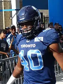 Smith was drafted ninth overall in the 2019 CFL Draft by the Toronto Argonauts and signed with the team on May 16, 2019.[2] He made his professional debut on June 22, 2019, against the Hamilton Tiger-Cats. He recorded his first career sack on July 18, 2019, against the Calgary Stampeders' Nick Arbuckle.[3] He later made his first career start on August 16, 2019, against the Edmonton Eskimos. Smith finished his rookie campaign having played in 14 regular season games, starting in four, and recorded 15 defensive tackles, one special teams tackle, four sacks, and one forced fumble.[4] He did not play in 2020 due to the cancellation of the 2020 CFL season.