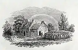 Anderson had started writing at a time when the Scots dialect poetry of Robert Burns was spawning fashionable imitations. His initial impulse to write had sprung from disgust at songs "written in a mock pastoral Scottish style" that he had encountered while in London.[25] But this did not prevent him from writing in the same debased Lallans that he deprecated. Indeed, beside the lyrics of his in standard English set by James Hook, several others were in Anderson's derivative Scots, including "Donald of Dundee", "Bonny Jem", "Muirland Willy", "Dearly I love Johnny O" and "The Press Gang". He also used it later in a verse epistle addressed to Burns and in his narrative poems, "The Harper", "The Dying Harper" and "Fair Margaret's Bower". Shortly after his death, some of his lyrics were published alongside those of his model in the chapbook Burns' songs and Anderson's Cumberland ballads (Newcastle upon Tyne, 1839).[26] By comparison with his writing in Scots, Anderson's own dialect work was more uncompromising and brought better success.[27]