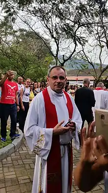A native from Southern Poland, he entered the Higher Theological Seminary of the Archdiocese of Krakow in 1988, and was ordained a deacon in 1993. After his priestly ordination, held at the Wawel Cathedral in 1994, he began his work as a parish priest. His missionary work in Brazil began in 2005, as a fidei donum priest in Rio de Janeiro. His tenure at the head of Santa Luzia Parish (2006-2019) was marked by the construction of its new church, a large temple dedicated in 2011.[1] In 2019, he was chosen to succeed his fellow countryman, Zdzisław Stanisław Błaszczyk, as the head of São Pedro do Mar Parish, following the later's appointment as Auxiliary Bishop of Rio de Janeiro.[2] Besides his function as a parish priest, he acted also as Episcopal vicar of Jacarepaguá vicariate and coordinator of the archdiocesan Commission for Altar Servers and Acolytes.[3]