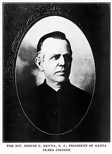 Robert E. Kenna, S.J. (1844–1912) was appointed Santa Clara University's 9th and 12th president after the presidency of John Pinasco and Joseph W. Riordan. He was first a student, then professor, then president from 1888 to 1893 and again from 1899 to 1905.