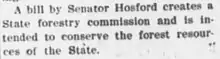 In 1909, Hosford served as the Chairman of the Committee on Agriculture and Forestry in the Florida Senate.[12] While serving as Committee Chair, he introduced a bill to aid in the conservation of state forests and to create a state forestry commission.[13][14] He also served on a number of other Committees in 1909: the Immigration Committee, Indian Affairs Committee, the Pensions Committee, the Prison and Convicts Committee, and the Privileges and Elections Committee.[15][16]