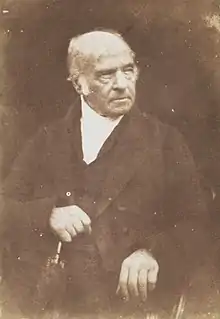 Lorimer was photographed by Hill & Adamson for the Disruption painting. Lorimer was born a few years after Conrad Heyer but nevertheless was one of the earliest-born people ever photographed. In the final painting Lorimer is depicted immediately to the viewer's right of David Brewster (who is reading a book with his hand on his glasses) and not far to the viewer's left of Thomas Chalmers in the very centre above Patrick MacFarlan who is signing the deed of demission. Lorimer, above a pile of books, is two to the viewer's left of David Welsh who is holding a copy of the protest.[8]
