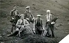 Robert Moyes Adam (left) on a Scottish Alpine Botanical Society expedition c. 1929 with Regius keeper William Wright Smith. (2nd from right).[1]