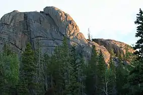 The Rock Creek Roadless Area (B032) is located northwest of Buffalo, Wyoming, in the Bighorn National Forest. It comprises roughly 34,000 acres (140 km2) of forested timberlands, mountain parks, rugged canyons, and stunning rock formations. This area represents the entire spectrum of environments found in the Bighorn National Forest and encompasses prairie land to high alpine peaks. This roadless area is the source of the north, middle, and south forks of Rock Creek, Balm of Gilead Creek, Pheasant Creek, and Ditch Creek. The area is flanked on the eastern side by the Bud Love Big Game Winter Range and the HF Bar Ranch Historic District. On the southern side the roadless area is surrounded by the Paradise Guest Ranch. The roadless area is home to elk, moose, mountain lion, pine marten, blue grouse, ruffed grouse, and raptors. The Rock Creek area is the largest area of quality elk security habitat outside of the Cloud Peak Wilderness Area and would provide an important corridor from the high country to the Bud Love Habitat Management Unit.[1] The Rock Creek roadless area is dominated by lodgepole pine, some ponderosa, and aspen stands with low-growing juniper in the undergrowth. The area has not been opened to roads due to the ruggedness of the landscape and the high costs of implementation.